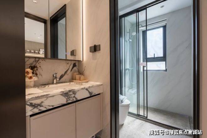 特别值得一提的是,建面约99㎡还做到了独立玄关+双卫配置,大大提升了业主的私密感