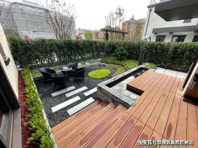 【上实·和风院】的庭前绿地是完整的,而且它就是室外的“主心骨”,仔细看户型图,从二楼、三楼的卧室向外望,庭前绿地就在脚下。