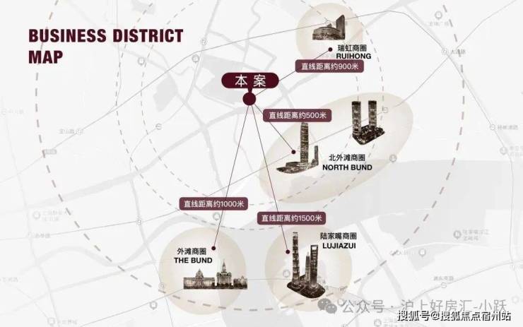 商业方面:项目约2公里内多元繁华构筑封面商业圈,北外滩商圈直线距离约500米;外滩商圈直线距离约1000米;陆家嘴商圈直线距离约1500米;瑞虹商圈直线距离约900米。