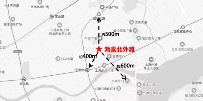 「海泰北外滩」位于虹口区四川北路塘沽路(江西北路以东,塘沽路以南,四川北路以西和规划七浦路以北),距离外滩源仅有600米