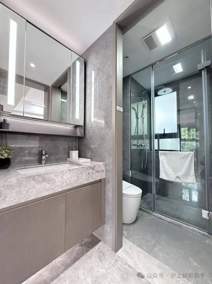 项目在厨卫方面同样甄选全德系TOP级精装品牌,包括西门子的壁挂式油烟机、大火力燃气灶、嵌入式洗碗机,唯宝的一体化智能马桶(主卫),高仪的恒温淋浴系统、面盆、龙头等。