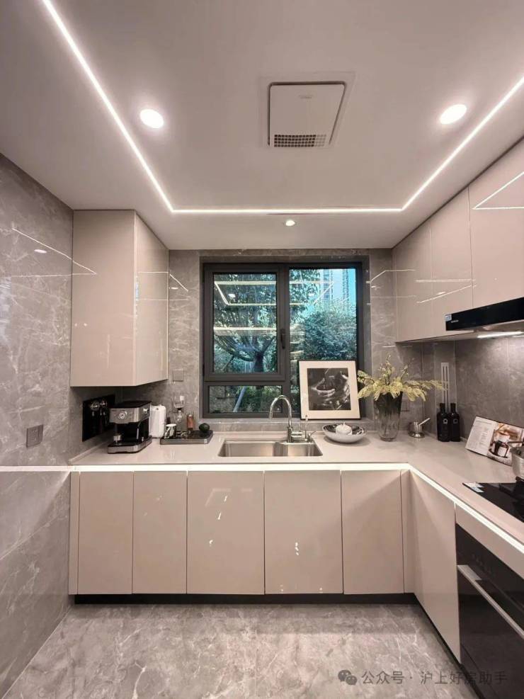 橱柜收纳系统:特别预置洗碗机点位、柜内下拉篮式设计、不锈钢挡油板、柜下操作灯、烹饪全流程功能动线一体化设计;