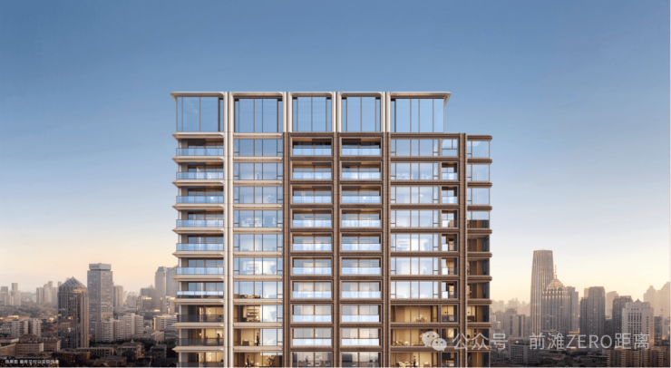 建筑整体采用经典三段式比例,融合中西建筑语汇,以现代极简风格为内核,通过自然咖与鎏金色的视觉碰撞,既延续传统,又彰显时尚。更值得一提的是,璞元将传承千年的东方陶艺进行当代转译,结合邬达克建筑线条,使陶制腰线不仅呼应上海向上的城市精神,也成为镶嵌于立面的文化符号。