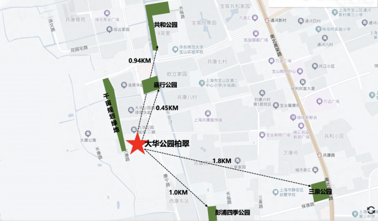 直线范围约4KM内:宝山山姆超市、弘基文化休闲广场、经纬汇等