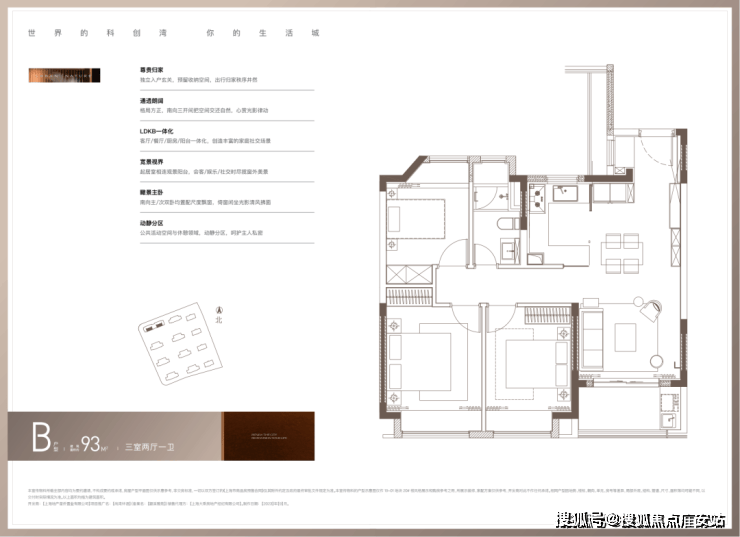 主力建面约93㎡3房2厅1卫: