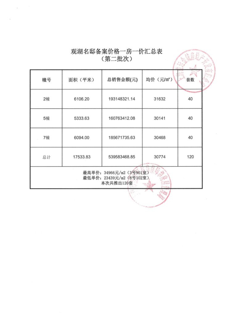 项目一房一价表