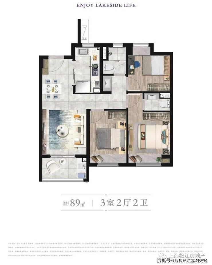 89平样板房照片 三房两厅1.5卫