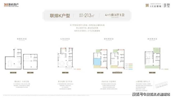 叠加共计12套房源,有6套建面约143㎡上叠与6套建面约154㎡下叠。还有4套建面约186㎡联排与2套建面约212㎡联排。