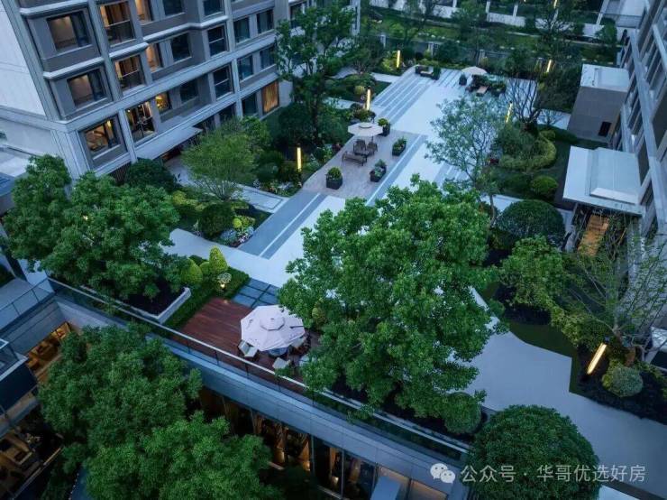 站在中央草坪望向四周,视觉没有被密集的楼体压迫,而是被大树的枝叶与远处的天空做了“抬升”,这种松弛感是低密产品才给得出来的。