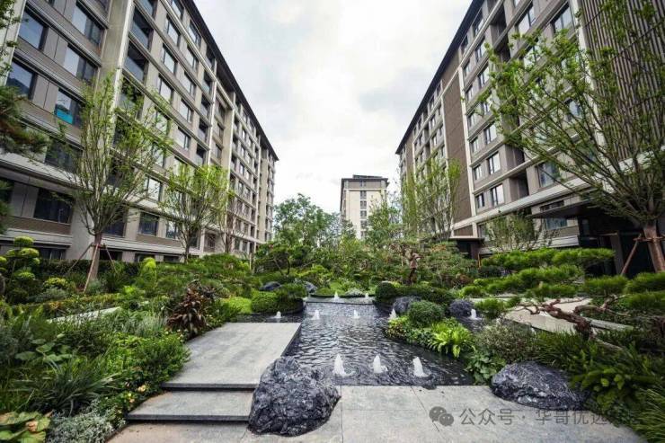 更大的 景观骨架是一环七园三巷。 外部环路串起七组主题花园,植物群落四季可读;三个社区巷道承接通达性与邻里互动;人车分流与上下双动线进一步保证了安全与秩序。带娃在草地上跑、老人推动助行器在绿廊里散步、年轻人穿过巷道去会所健身,这些场景可以互不打扰地并行发生。设计初衷并非“好看”,而是鼓励高频使用、把公共空间变成真正的公共生活。