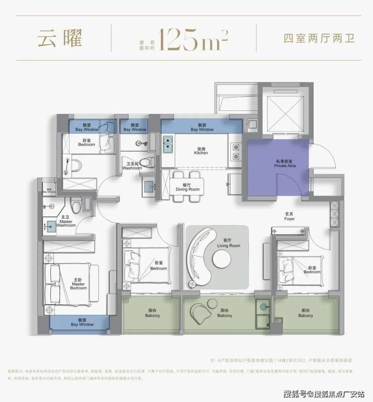 尺度感上:这是新政后松江板块首个四开间朝南、且不封阳台的三阳台户型。