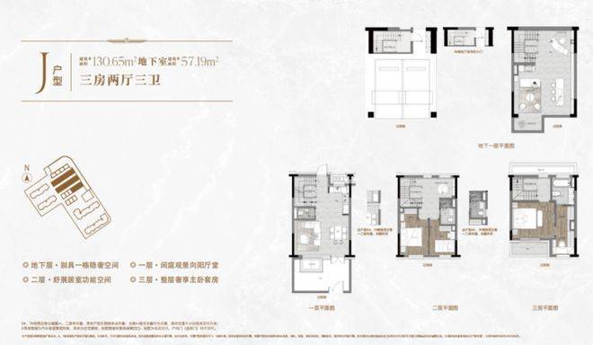 「興華里」建面约130㎡的J户型联排别墅为例,加上地下室、花园、露台,附赠面积达到约76㎡+,使用面积约206㎡+!而建面约154㎡(H户型)的产品,更是附赠了惊人的约87㎡+,使用面积约240㎡+,算下来价格甚至比平层还便宜!
