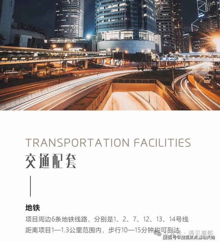交通配套:周边6条地铁线环绕 1/2/7/12/13/14号线 (1公里左右)