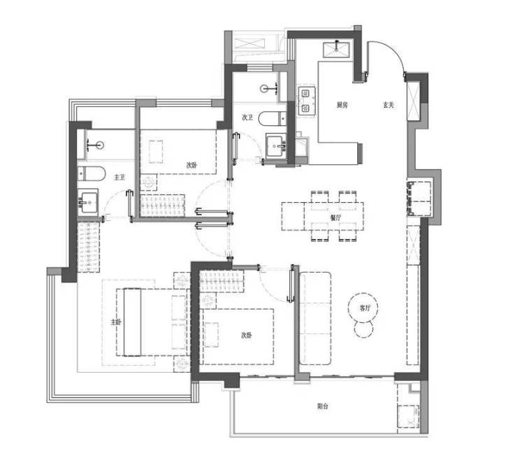 建面约100㎡3房2厅2卫户型图