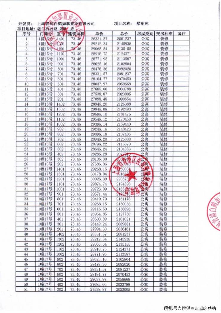 项目一房一价表