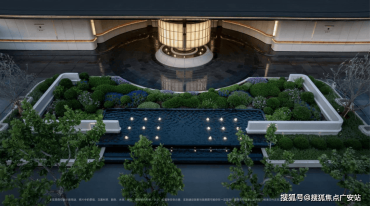 社区景观方面,项目运用室内手法室外化设计构想,将垂直景墙、悬浮观景台与叠水景观立体穿插,形成情随境转的沉浸式体验,自然元素渗透进室内,并与室内空间动态互动。