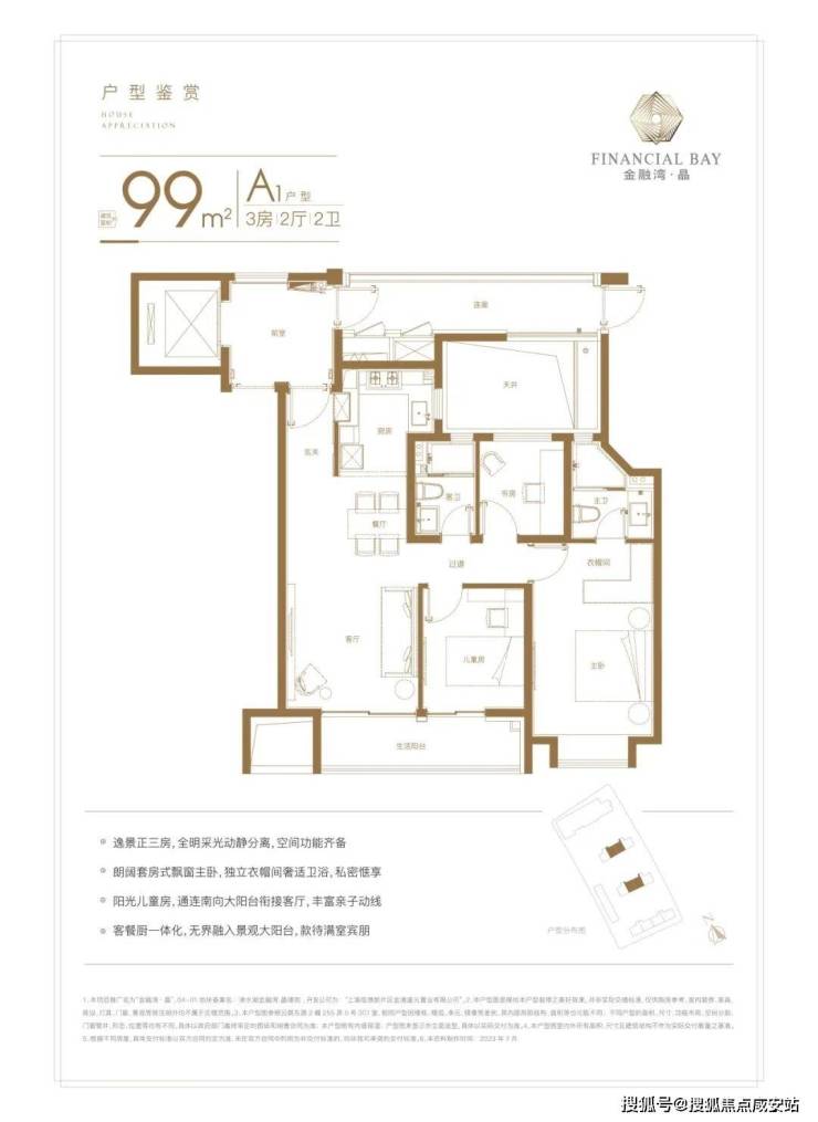 户型推荐: 建面101㎡三房两卫,总价约374万起。经典竖厅布局,动静分区,主卧套房设计+双卫配置,三代同堂亦从容。