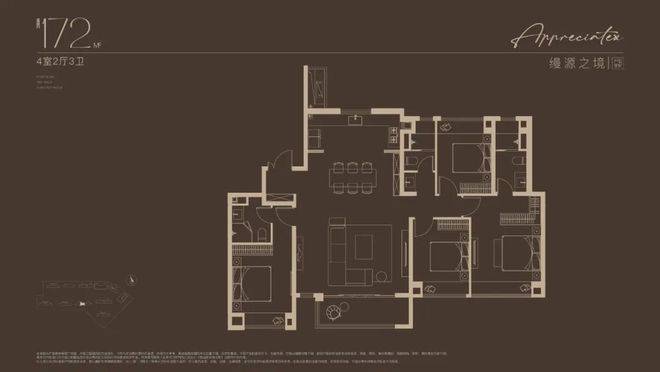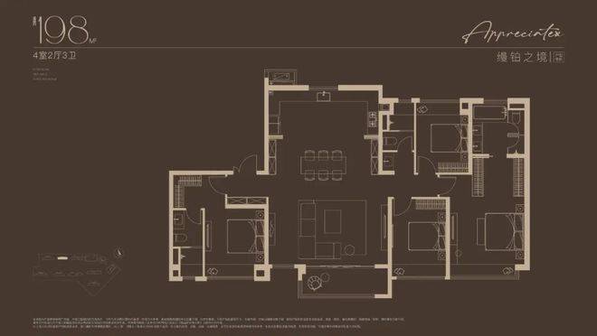 建面约 172 - 198㎡的大平层,四房三卫 + 阔景阳台,宴请亲友超有面儿。