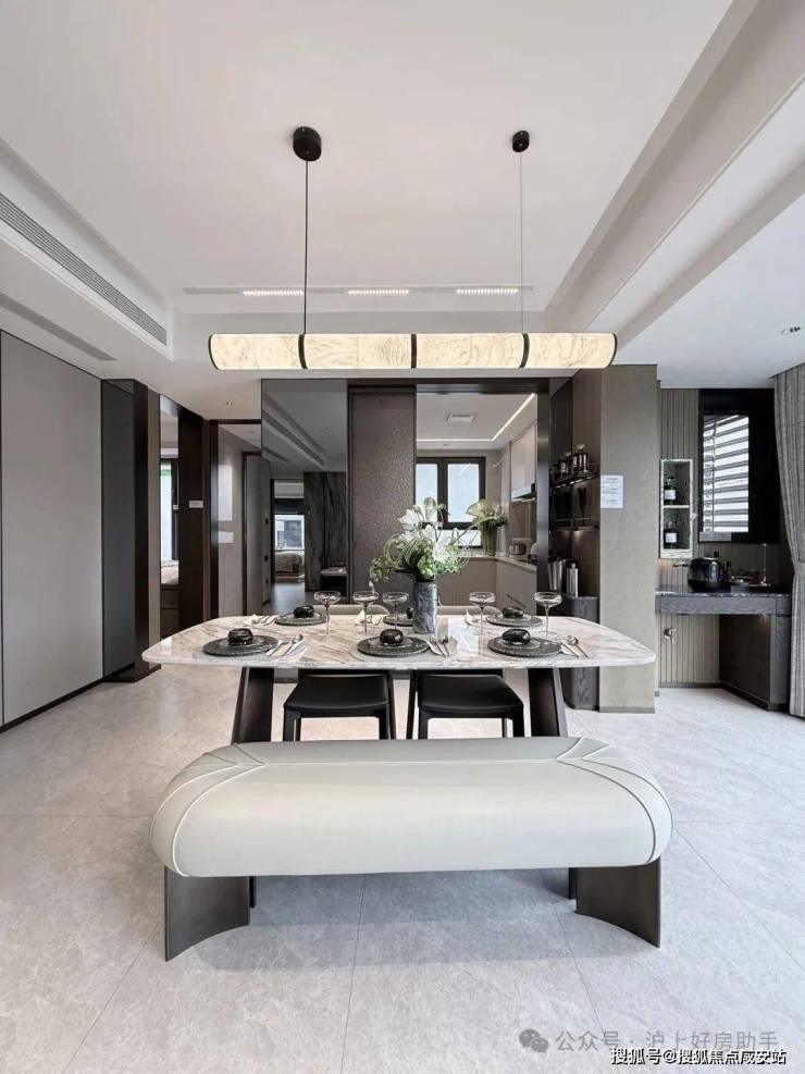 客餐厅厨一体化+大尺度观景阳台,整个公区几乎没有面积浪费,营造的空间感和尺度感远超同价位其他竞品!