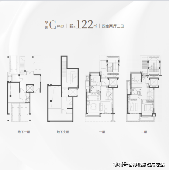 •二胎家庭:115㎡中叠四房,一步到位,地下室可改影音室+儿童活动区;