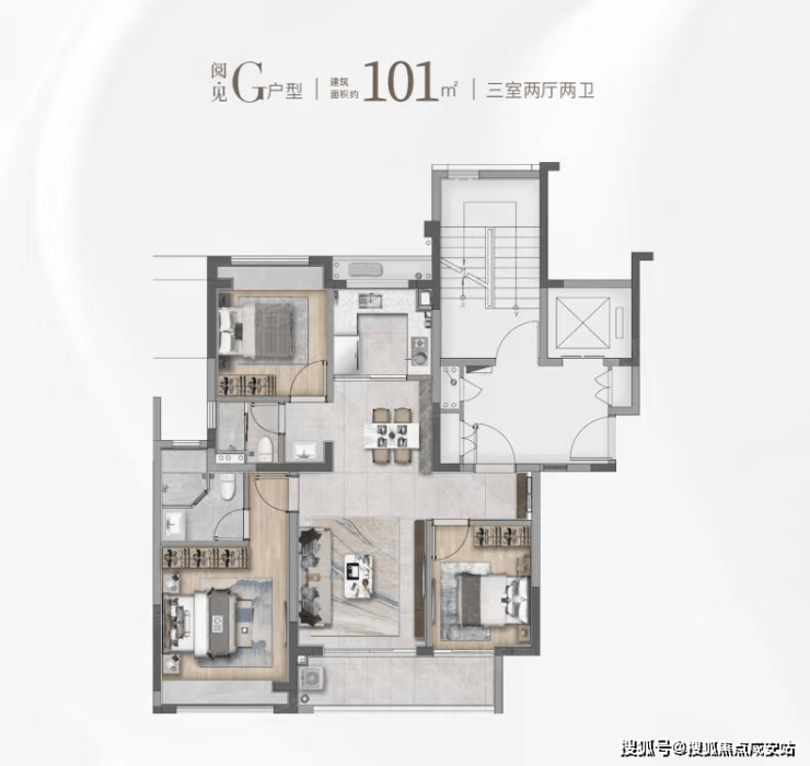 高层主力101㎡三房两卫: