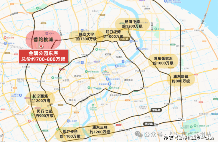 我们纵观这条金色中环带上的诸多板块,目前 房价还未被狂热炒作、尚能称得上“价格洼地”的宝藏地段,唯有金隅公园东序所在的桃浦智创城。