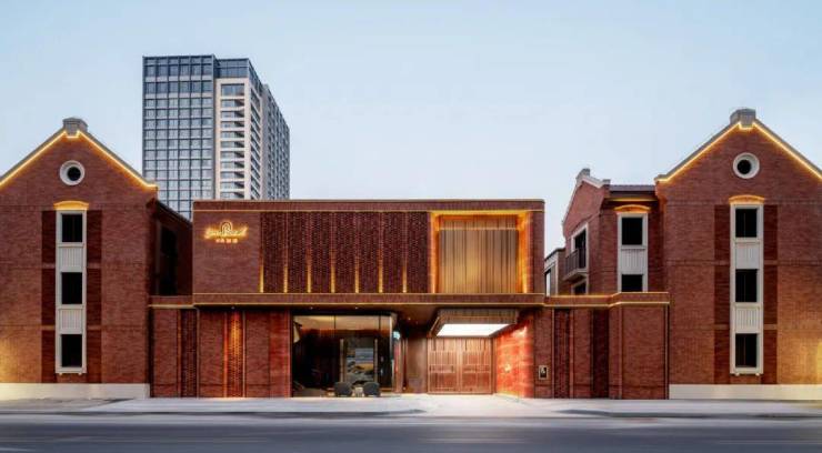 例如,在社区入户,目前已经完美呈现出来的,有强烈视觉冲击的立面大量的红砖、红洞石及大面积的落地弧形玻璃搭配的相得益彰,整个门头既有厚重的历史感,又不失极简主义的现代美。