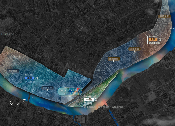 项目位于杨浦滨江“一岛两翼“黄金支点,向左是滨江南段产业核心,向右是复兴岛未来科创。