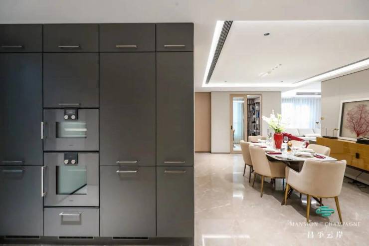 德国顶级奢侈品厨电品牌,上海豪宅标配。项目四房及以上户型配置6-7件套——蒸箱、烤箱、洗碗机、冰箱、中式油烟机、3眼(2+1)灶具、西厨部分有电磁炉;