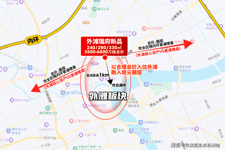而外滩瑞府核心竞争力,在于其对“外滩核心圈”的精准占位(直线外滩约1公里)