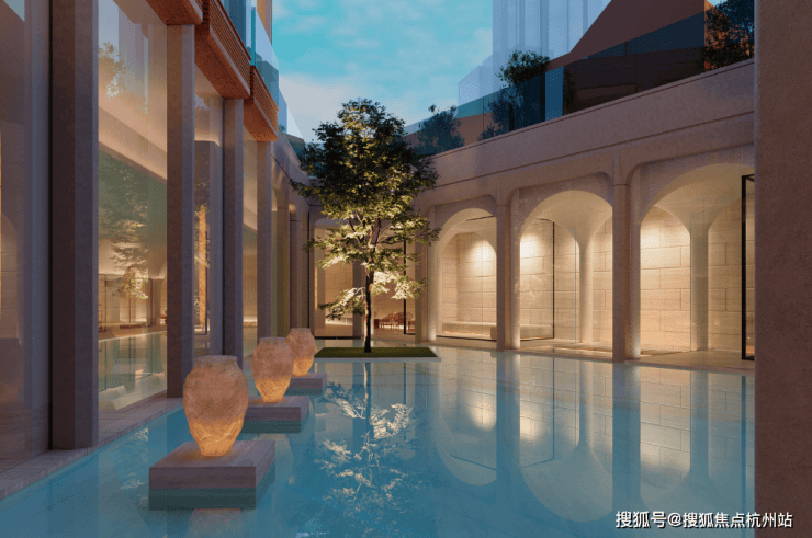 其中,汤臣一品御用设计师渡边智昭操刀的泛会所尤为亮眼! 他突破传统局限,不仅打造了独立“室内外双幕水剧场”!