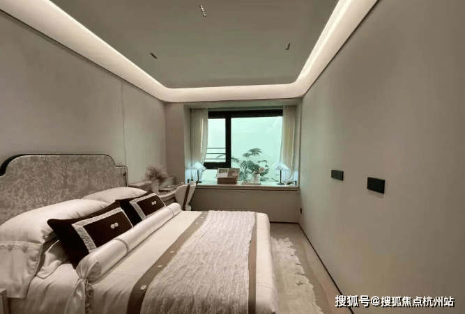 主卧背景墙更以威尼斯安缦酒店同款树瘤木,搭配巴黎宝格丽酒店同源羊皮纸,将全球顶奢酒店的居住质感搬进家中,每一处选材都彰显塔尖人居的高奢基因!