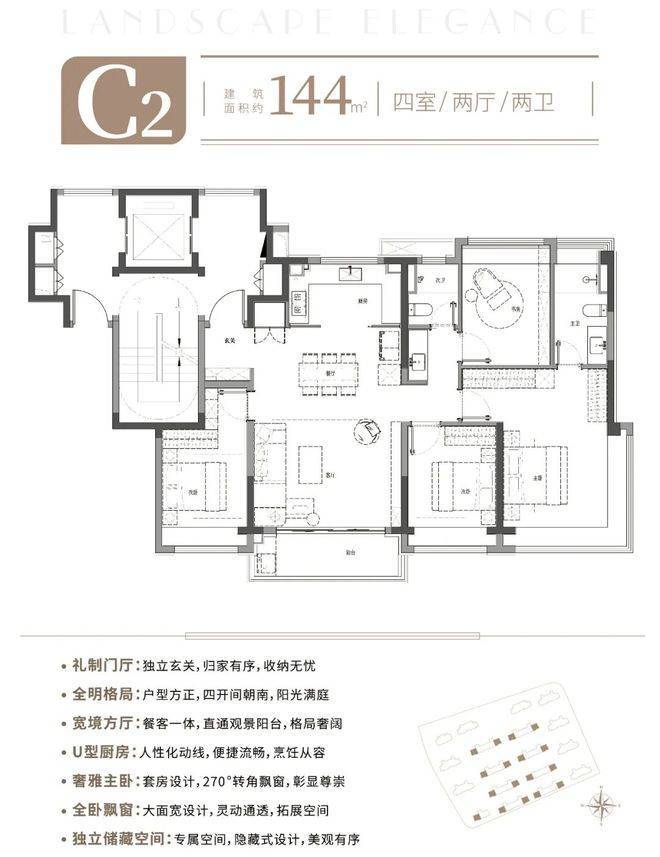 建面约144㎡4房2厅2卫户型