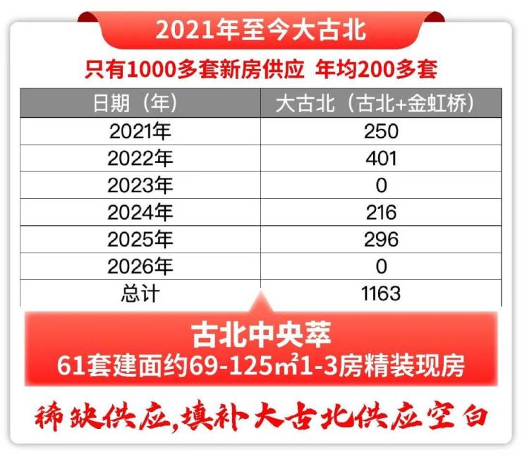 的确,过去5年多来,大古北板块有两年零新房供应,年均供应仅200余套,新房稀缺度不言而喻。