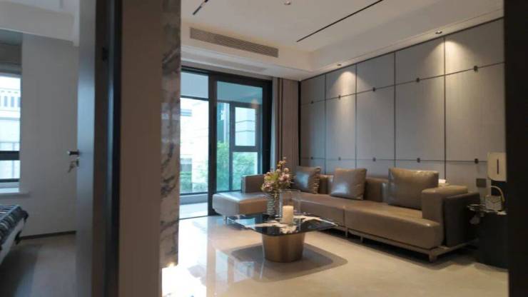 叠加、联排产品外立面采用大面积干挂石材,通过数控切割、精度弯弧、打磨抛光等多重精细工艺,展现优美风貌。洋房底部楼层同样选用天然石材,质感出众。
