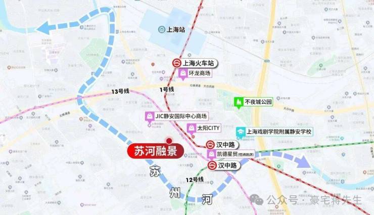 苏河融景步行约200米1/12/13号线汉中路站,进站后2站人民广场,2站南京西路、2站北外滩。