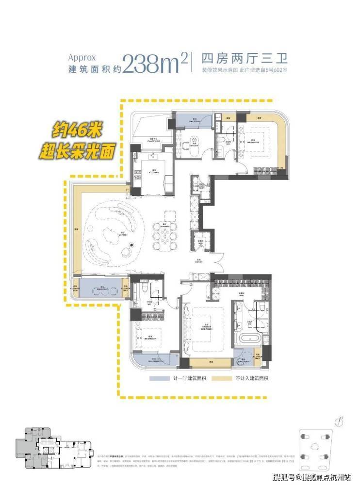 得益于新规,安澜上海238㎡套内实得率约88%(不含梯厅),算上梯厅约6.8㎡,整体附加使用面积可达约31㎡。