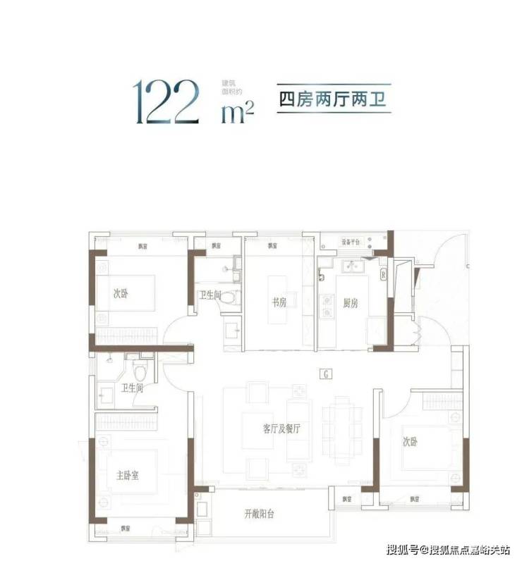 户型特点:宽境4房,拓宽空间尺度;大开间、进深短,通透采光;主卧独立卫浴,优雅随心的寝居感受。