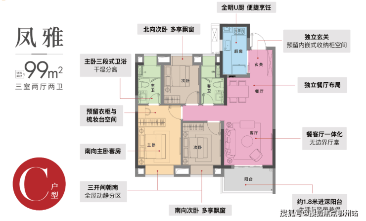 C1户型 | 3室2厅2卫 | 建筑面积约99㎡