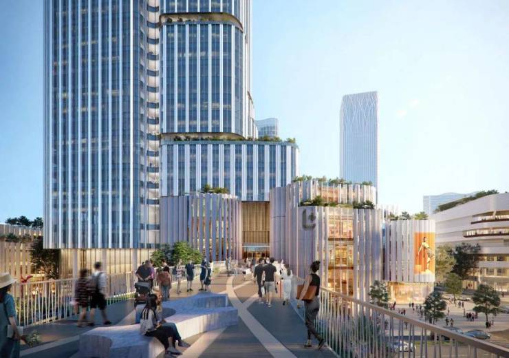 项目特邀国际知名建筑事务所KPF操刀设计,基于层峦叠嶂的设计理念及垂直城市设计概念,以自然和景观为设计领导,通过柔和的线条和曲线几何形状,打造独具特色的建筑群,成为城市一道亮丽的风景线。