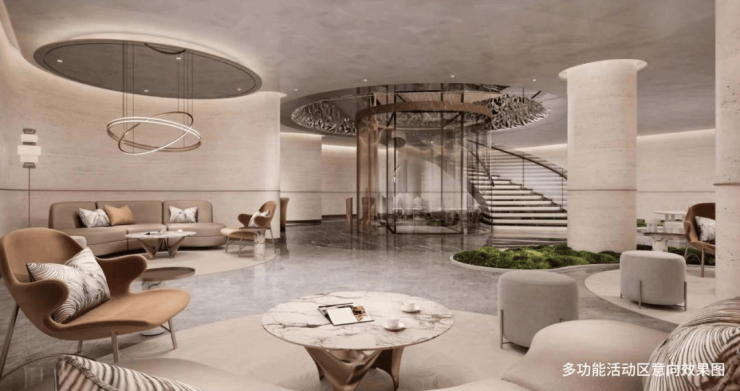 秉承高品质的生活理念,特别打造约2800平方米地下两层会所,整体空间借由自然光线和建筑线条的铺层,提炼空间结构,加之金属材质造型丰富层次,幻化出光的场域。会所中配备健身房、泳池、休闲娱乐等,让业主在家即享全年龄健康生活,同步打造业主的专属社交圈,进阶生活品质。
