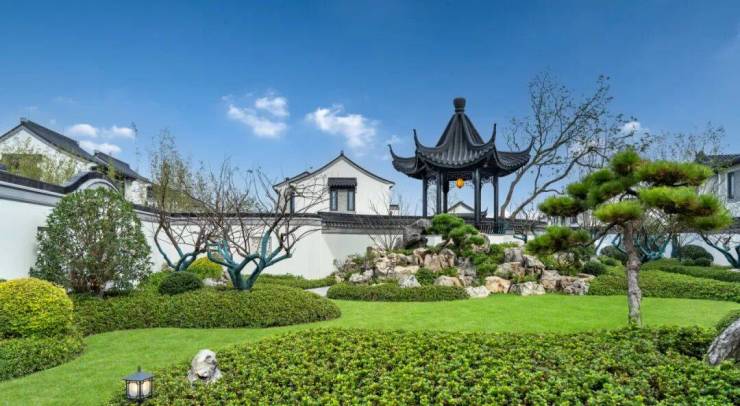外部生态环境有多优越,自不用再多赘述。更值得关注的是项目的内里,项目与周边低密生态环境的一脉相承,对标古镇中式风格,在文脉传承和风格打造上的天衣无缝。