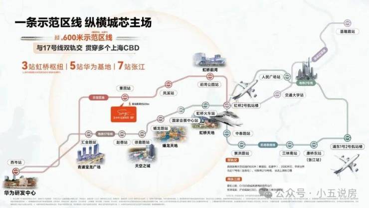 交通动脉的贯通更是点睛之笔:直线距离项目约600米的示范区线(在建中)被称为“科创金线”,开通后可实现3站直达虹桥枢纽、5站衔接华为基地、7站抵达张江。 这条轨交与崧泽高架等快速路网,共同构筑了衔接市区的“黄金走廊”。