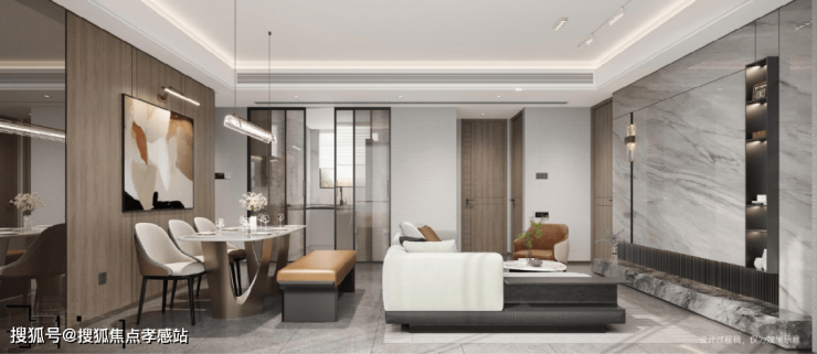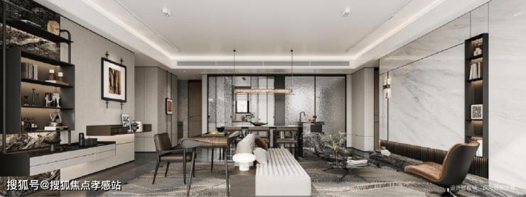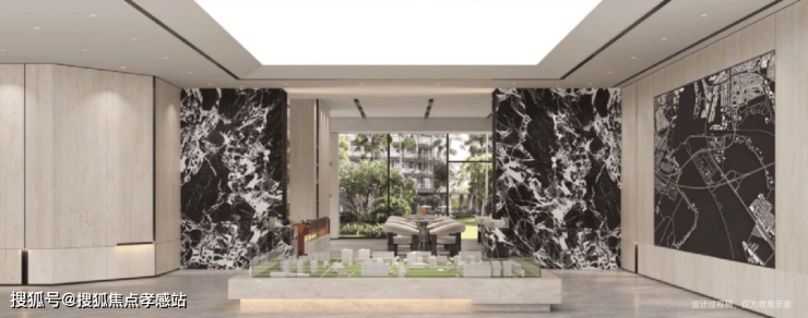 售楼处设计源自伦敦与上海半岛酒店的优雅复古,将现代极简主义美学运用到极致。沙盘区景墙将取材Celine御用石材宝格丽黑大理石,以永不过时的摩登气息,点睛空间的奢华精致。