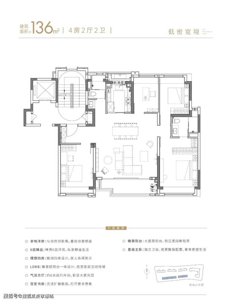 建面约136㎡6层洋房纯粹的亲地性和高得房率,既能满足三代同堂居住需求,也能保障私密性和居住体验感的提升;