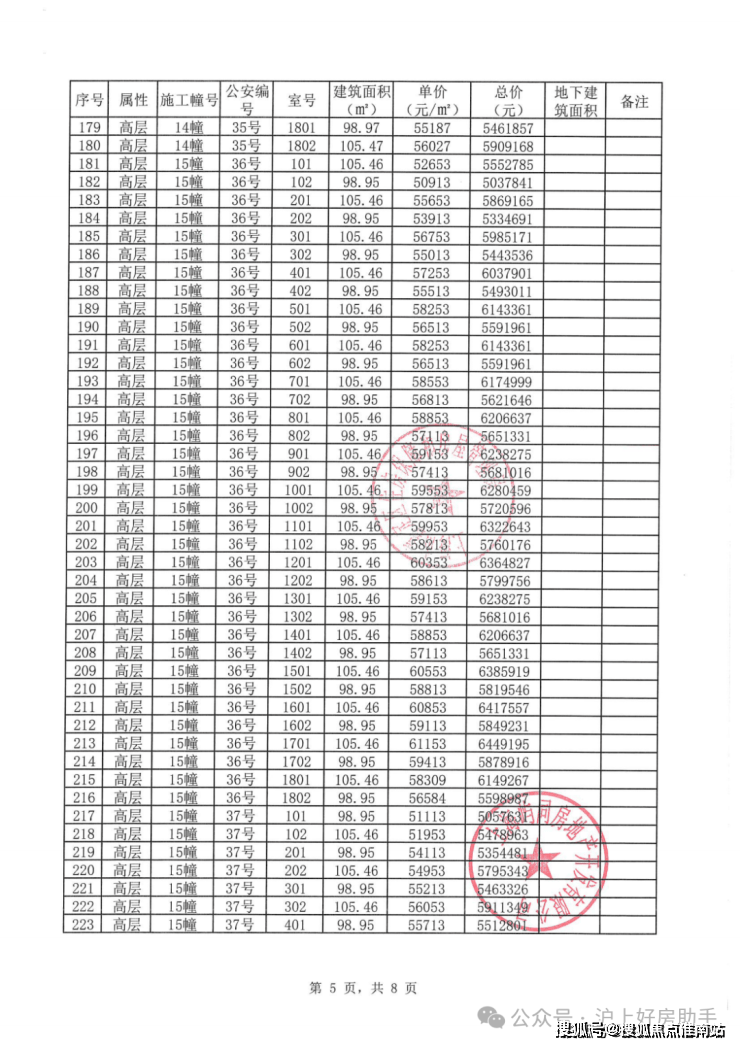 虹桥嘉悦府项目一房一价表: