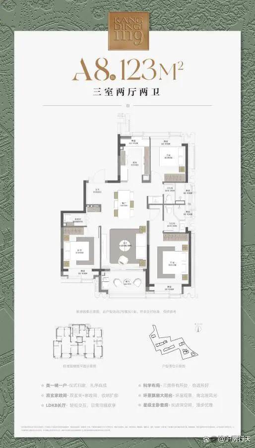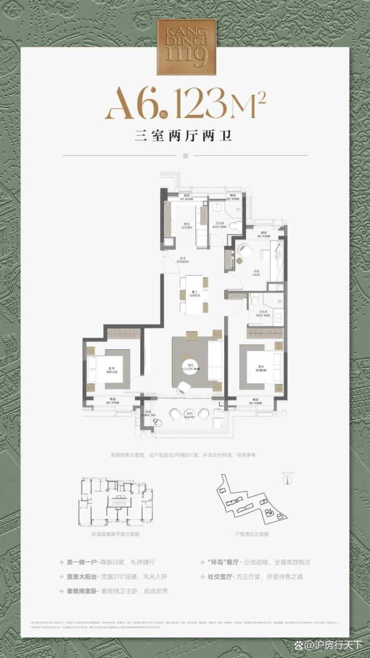 老静安「康定壹拾玖」均价17.18万/㎡!184套建面约123-238㎡3-4房!康定壹拾玖:梧桐浓荫下的领馆花园!