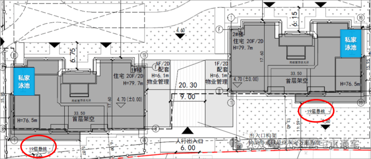 蕞南端的1#和2#楼均配套有私家泳池,还在19F采用了住宅楼当中较为少见的悬挑工艺,延伸出了一定的使用空间,预计就是做类似于“悬挑泳池”的。这里应该就是传说中的“超级大平层”所在位置。