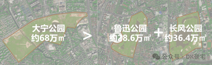 大宁公园约68万平,浦西中环内面积最大的公园。与此同时,鲁迅公园占地面积28.63万平,长风公园占地36.4万平。