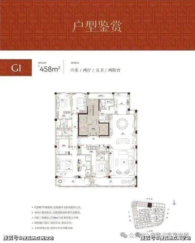 南北通透,五开间朝南,中轴格局,270°环幕采光尽揽风景。